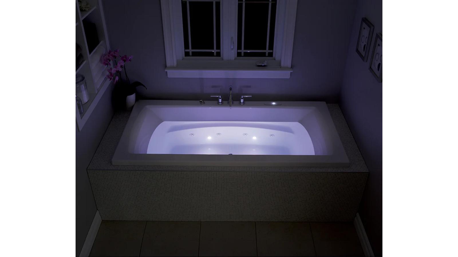 • Integrated lighting built into the bathtub contour